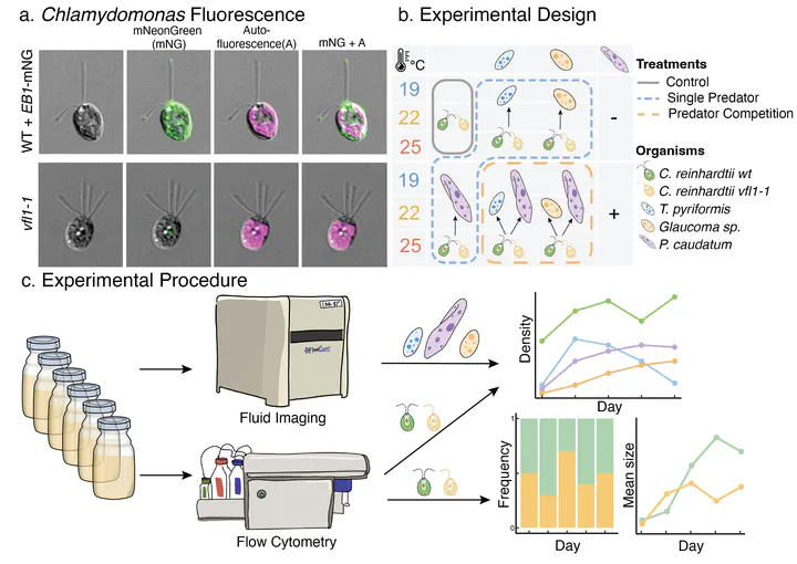 Understanding microbial responses to global warming is a pressing goal as microbes play major roles in the global carbon cycle. While the evolutionary responses have been heralded as a buffer against rapid climate change, we lack a clear understanding of how climate-driven evolution actually occurs within the complex microbial food webs in which all microbes are embedded in. Here, we used a combination of evolution assays in microbial microcosms, mathematical modeling, and novel applications of cell biology tools to close the gap.